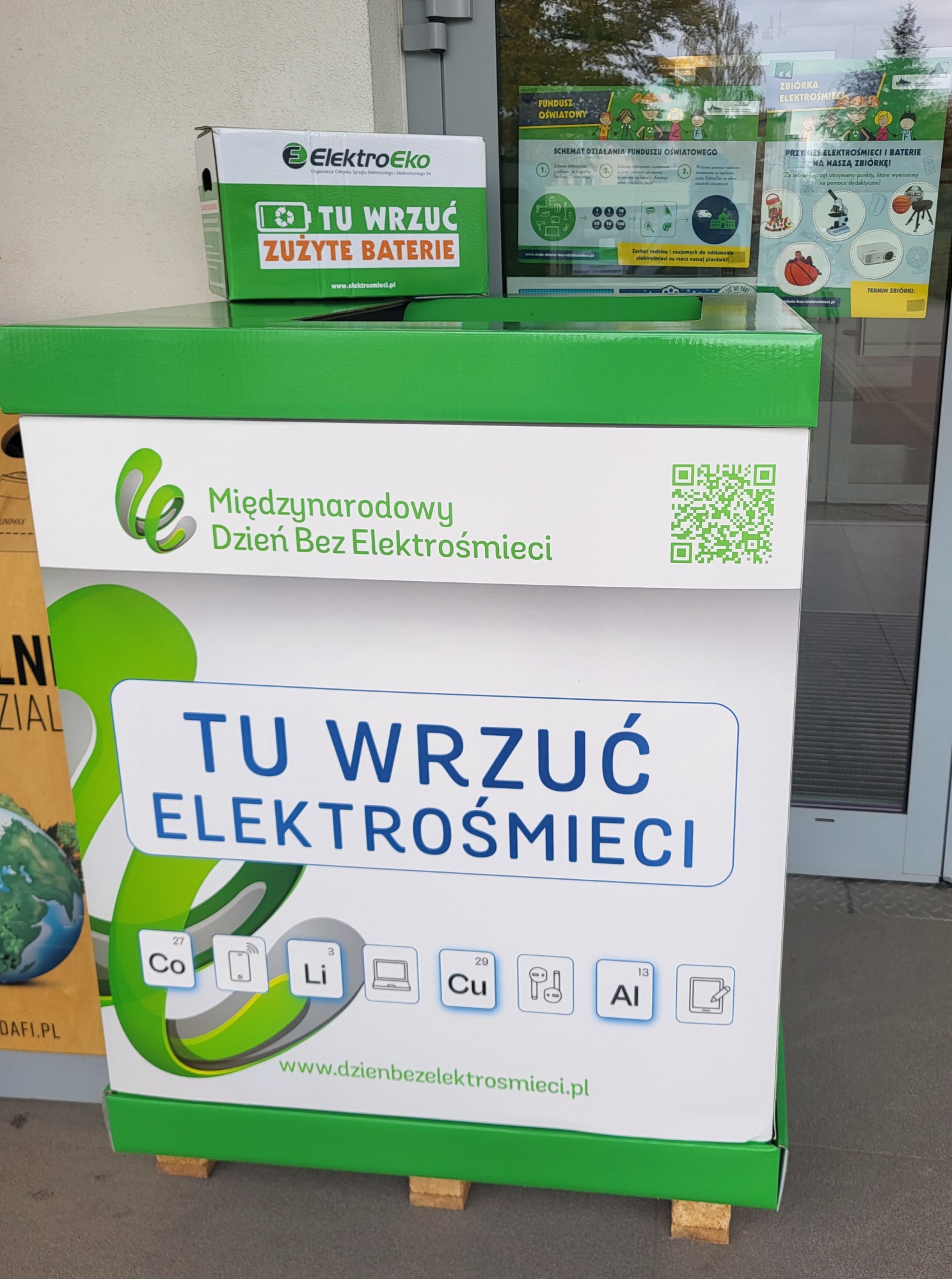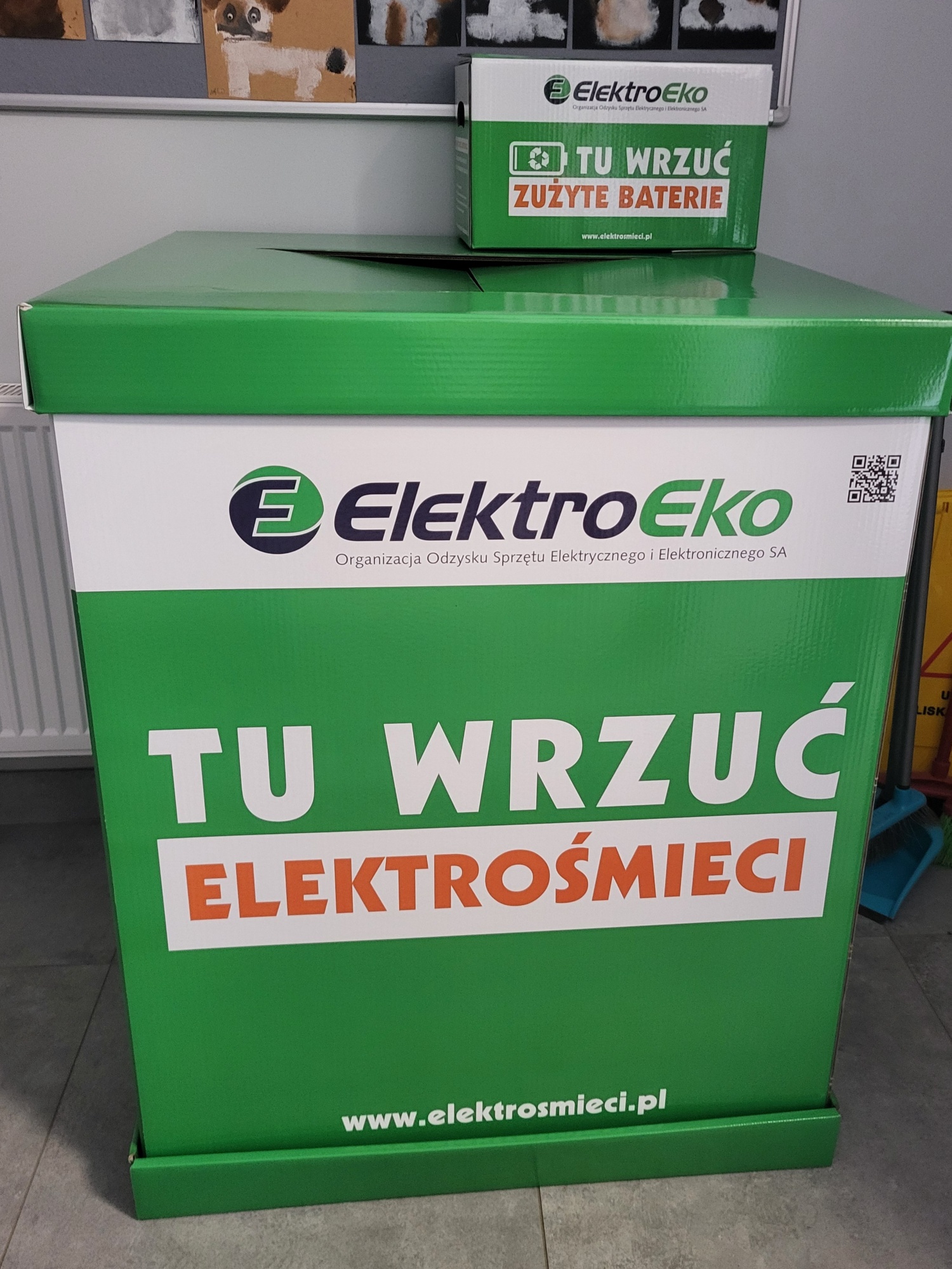 Elektrośmieci i zużyte baterie można wrzucać do specjalnych pojemników znajdujących się w budynku głównym i filii szkoły.